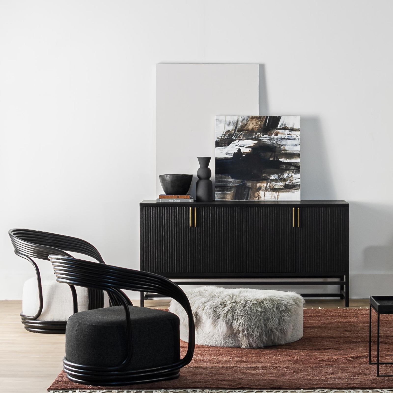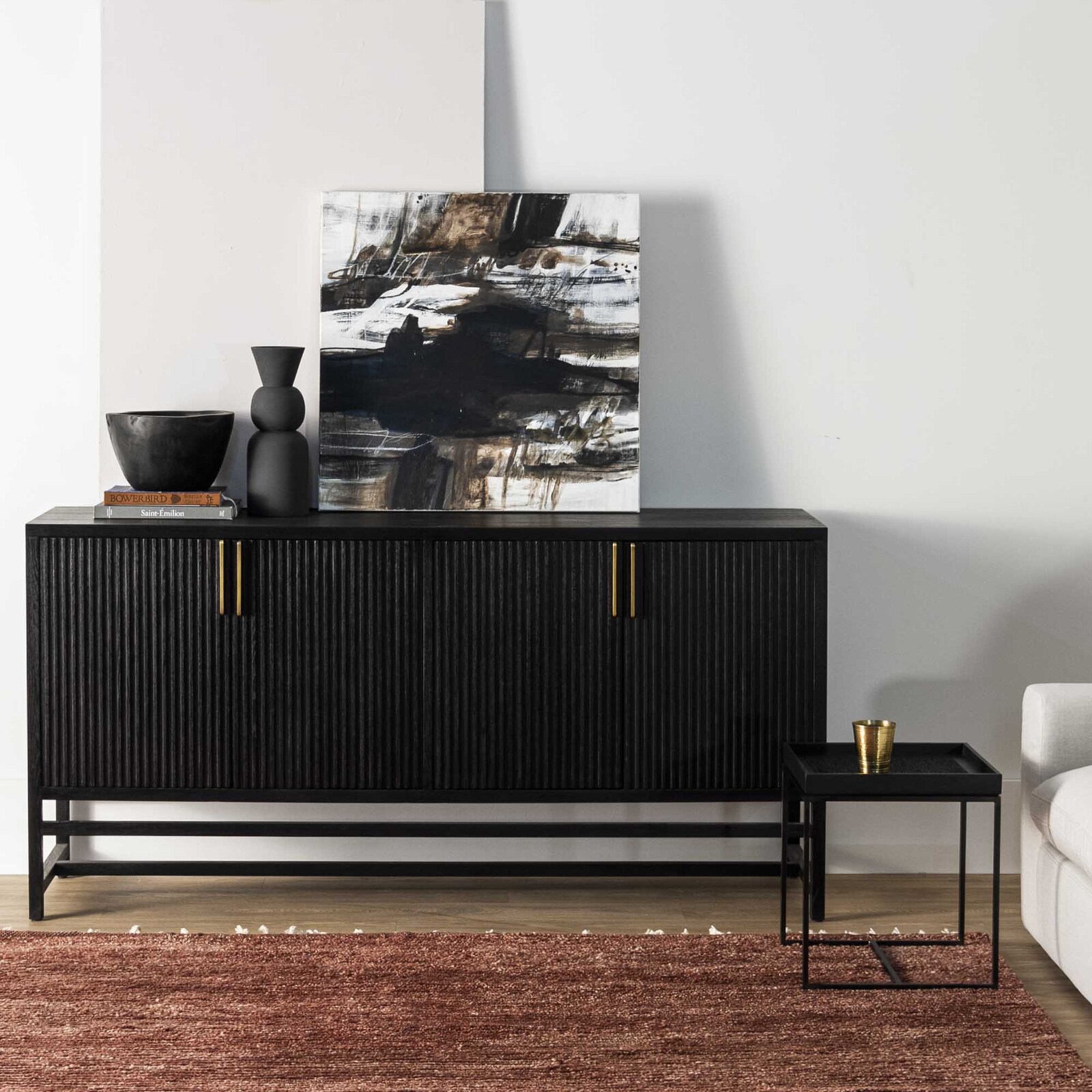 Addison is simple yet elegant. With handles, finished in antique brass or black metal, being an eye-catching detail so too is the the design of the metal base as it works in sync with its vertical, woodwork details.
