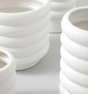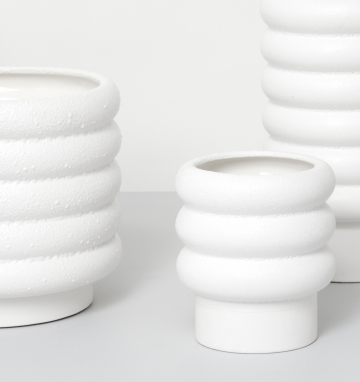 Featuring a quirky shape and a textured bubbly finish, the Alder planter is the perfect companion for your favourite plants! The Alder range is made from white porcelain, with a matte exterior and gloss glazed interior.