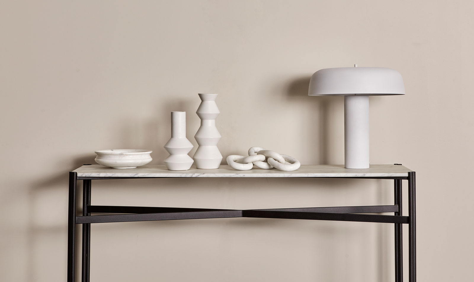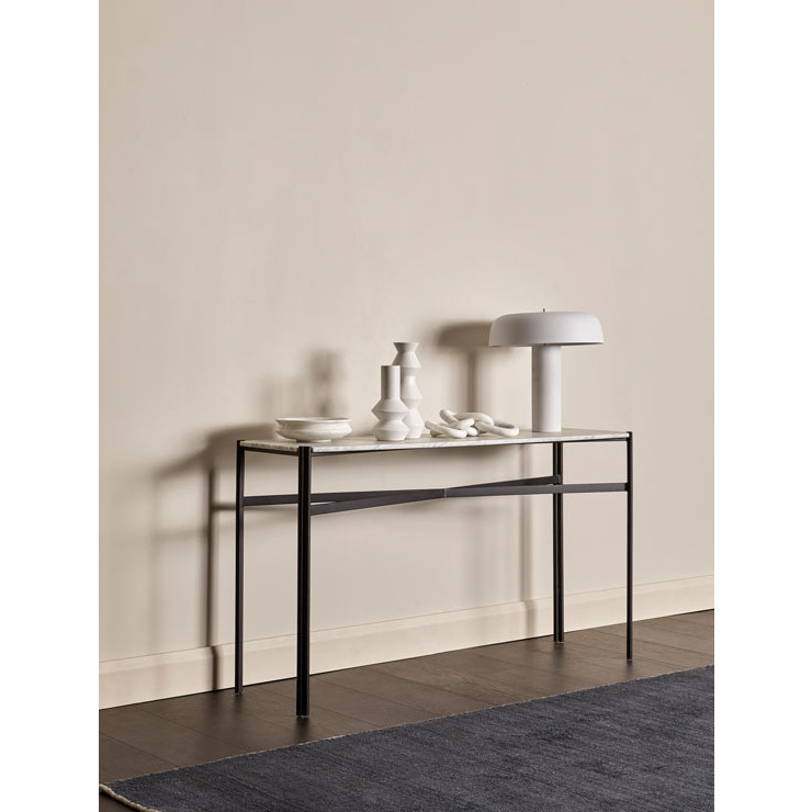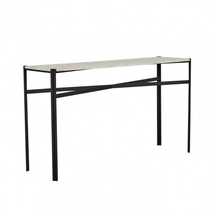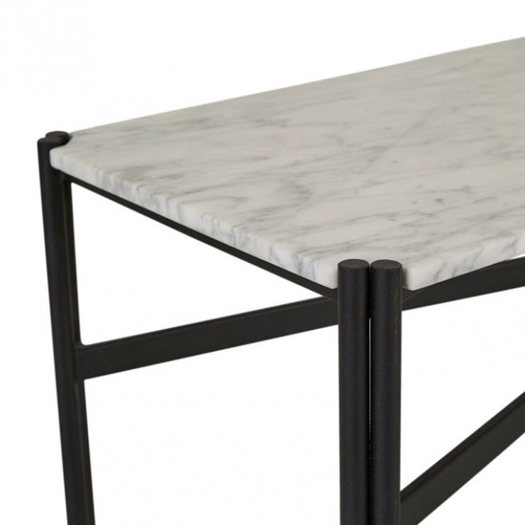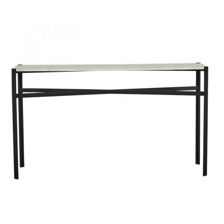 This eye-catching console table is ideal for making a classic statement in an entryway or foyer. The Atlas Twin Console Table has a smooth marble top and slender legs with a decorative crossbar and dual-pipe frame for a touch of industrial flair.