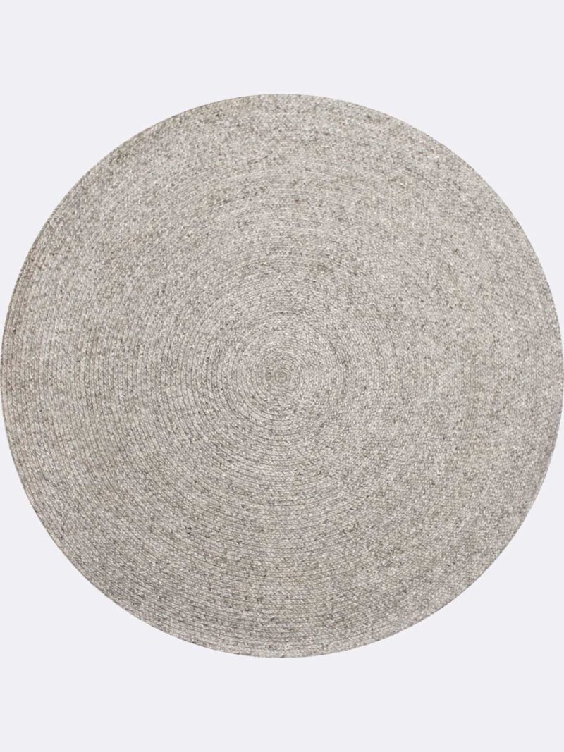 Round rugs made by hand, plaited, hand coiled and stitched from wool and artsilk which gives its subtle shine.