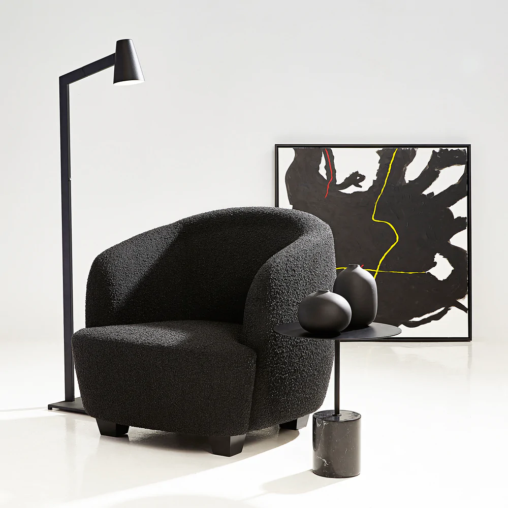 Architectural lines and matt black finish, the Tilt Floor Lamp is the perfect stylish and functional addition to your home or office. Easily paired with a chic bright home, or to contrast sophisticated light tones, this black floor lamp will add dimension to your reading nook, office space or lounge area. Available in matching or contrasting table lamp. Uses 1 x E14 MAX 40W globe (not included).